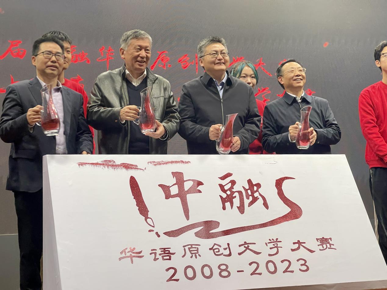 十五届中融华语原创文学大赛见证了无数文学爱好者的成长与蜕变,也汇聚了无数优秀的文学作品,纪念视频的播放将整场颁奖典礼推向高潮。上海市作家协会党组书记马文运,上海市文联副主席、上海市作家协会专职副主席、华东师范大学中国创意写作研究院院长孙甘露,华东师范大学党委副书记曹友谊,露出-美女户外露出 系主任文贵良上台共同发布中融华语原创文学大赛十五周年纪念logo。