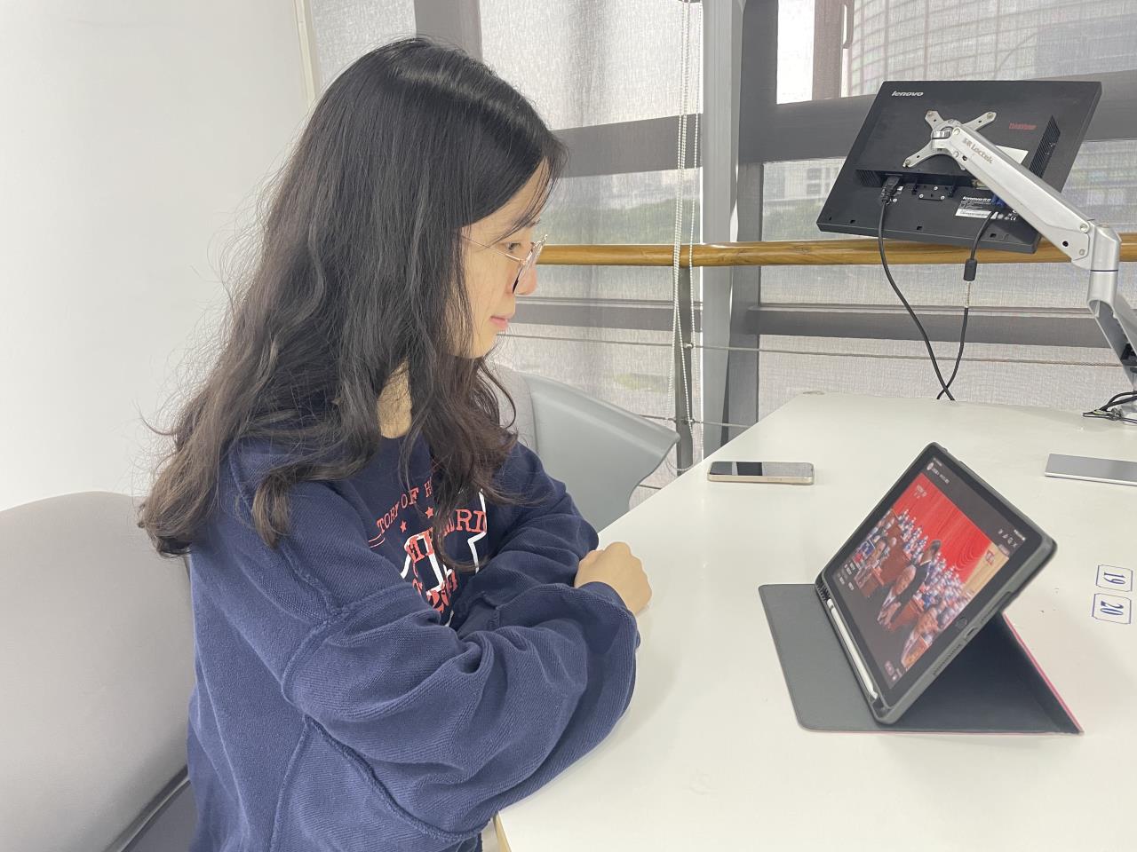 10月16日上午,中国共产党第二十次全国代表大会在人民大会堂开幕。露出 党委结合疫情防控要求,组织师生党员通过多种方式收看开幕会盛况。