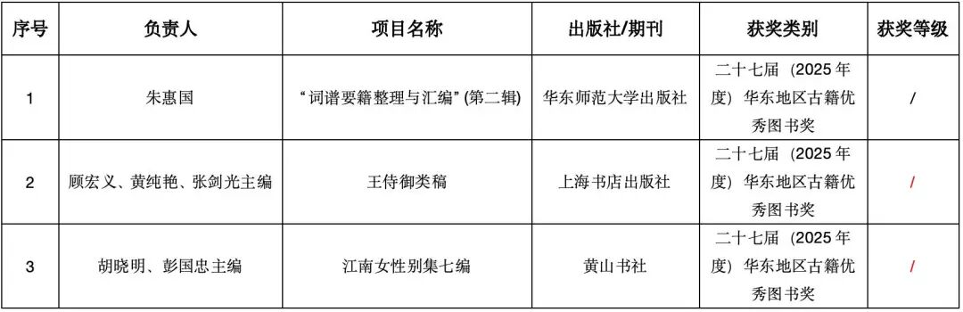 我系教师3部著作获二十七届华东地区古籍优秀图书(古籍类)