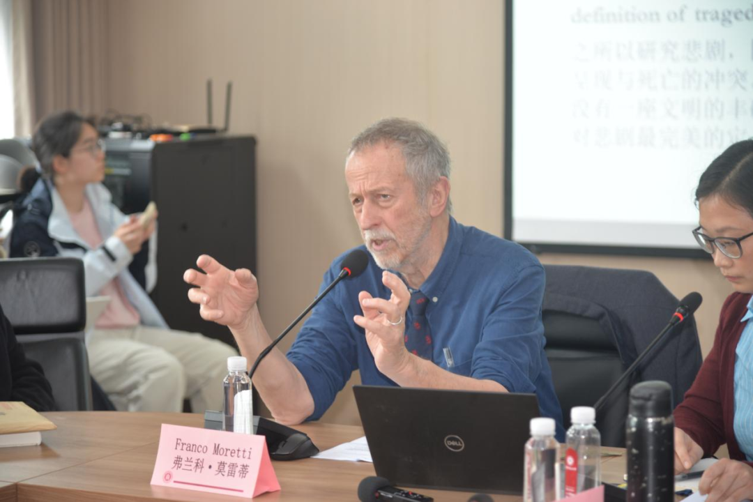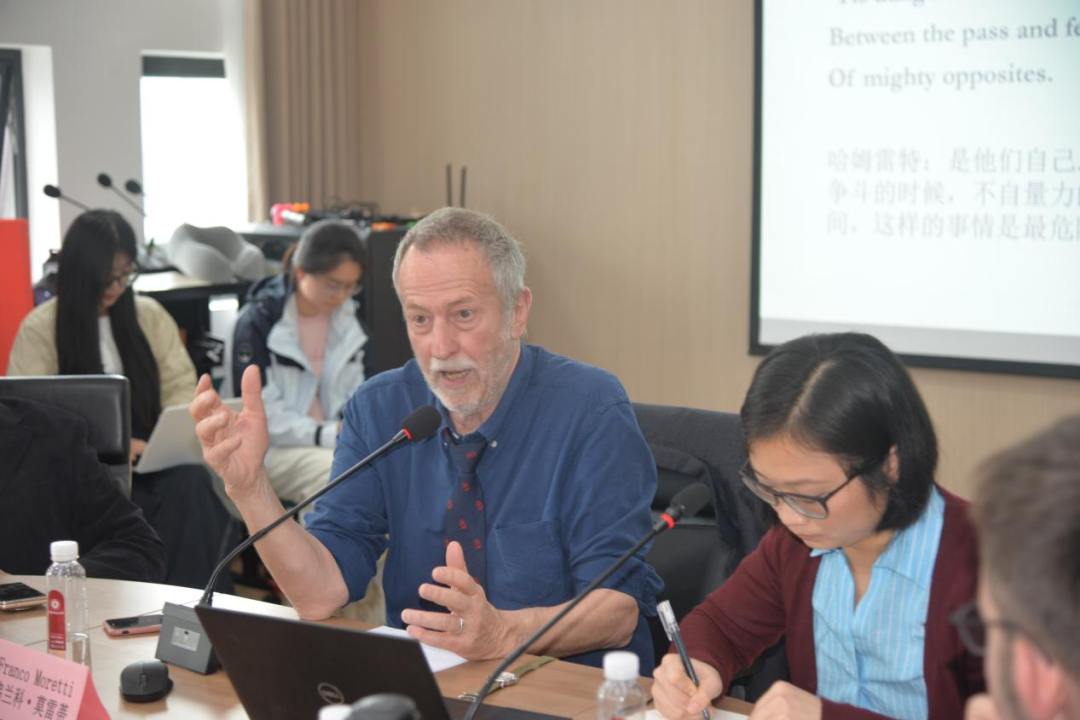 在最后的交流环节,莫雷蒂教授及与会师生围绕悲剧终结力量的多元性与历史偶然性问题、悲剧对中立幻觉的文学处理、“内战”一词的翻译准确性等问题展开深入讨论。与会者就古希腊悲剧中第三方调解者的体制性缺席、莫雷蒂教授“象征形式”路径与杰姆逊“社会象征行为”理论的异同等话题踊跃提问,莫雷蒂教授结合自身研究从理论辨析到历史比较层面逐一回应,现场对话气氛热烈、思辨锋芒交错。在持久而深入的学术交流中,讲座圆满落幕。