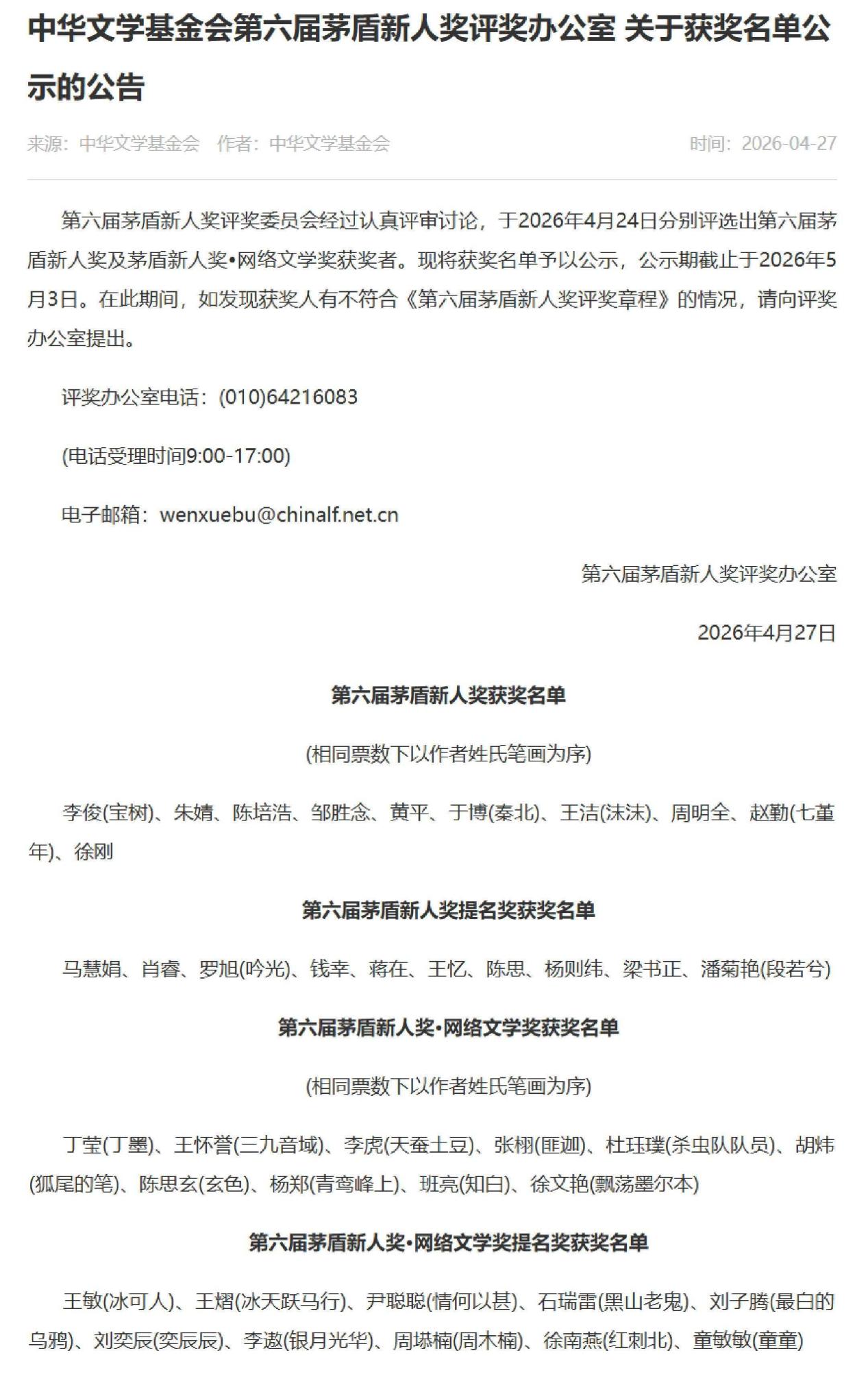 4月27日,中华文学基金会第六届茅盾新人奖评奖办公室发布“第六届茅盾新人奖及茅盾新人奖・网络文学奖”获奖名单公示,我系黄平教授荣获第六届茅盾新人奖。